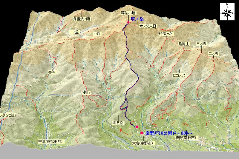 秦野戸川公園駐車場を利用した時は左側直進で登山道入り口へ |