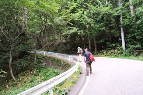 車道歩きで中房温泉へ向かう |
