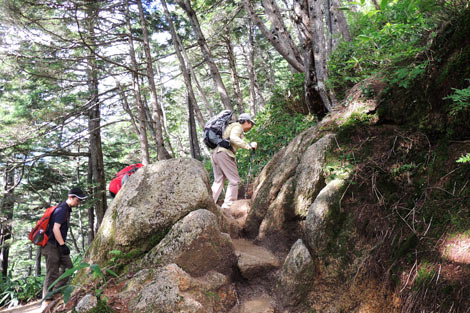 ギザギザ花崗岩の岩ゴロ道