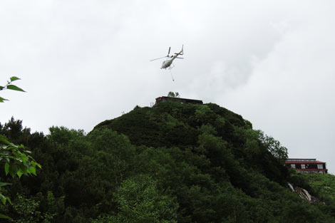 合戦小屋〜燕山荘間ピストン輸送中のヘリ |