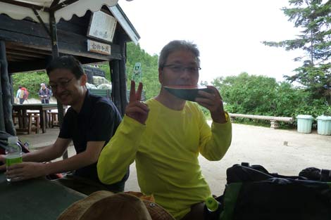 途中で意気投合したホヤホヤの山友とのことで、家族は遙か後方らしい(笑) |