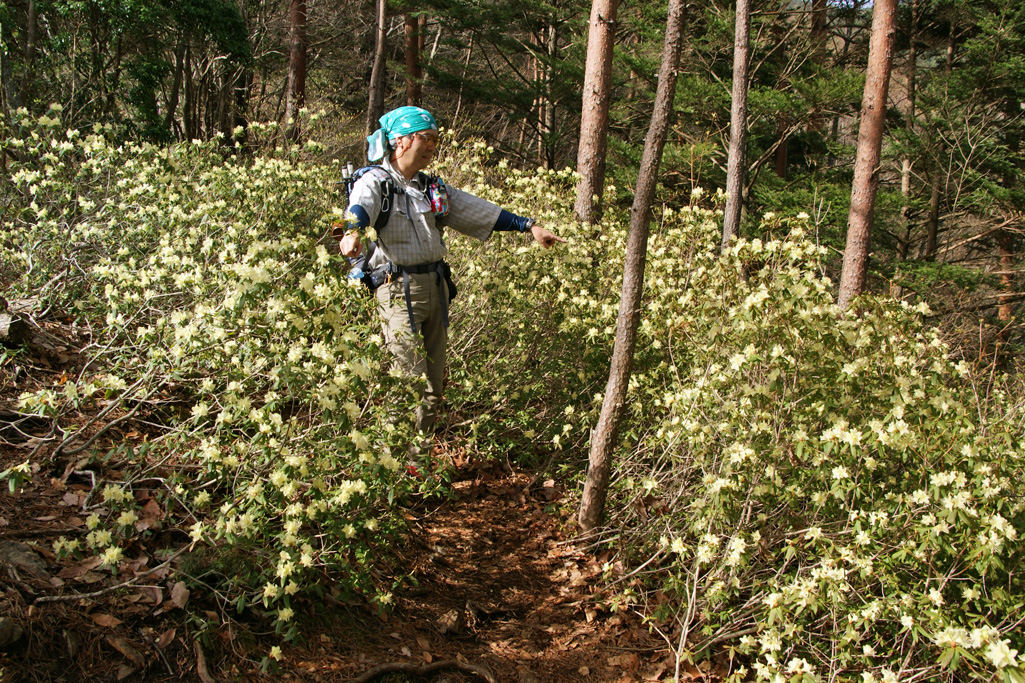 2008.4.15撮影 上の写真と同じ場所、満開のヒカゲツツジ群生地 |