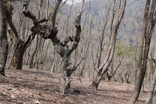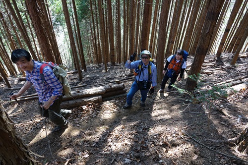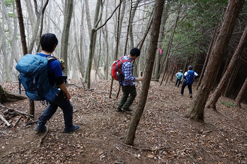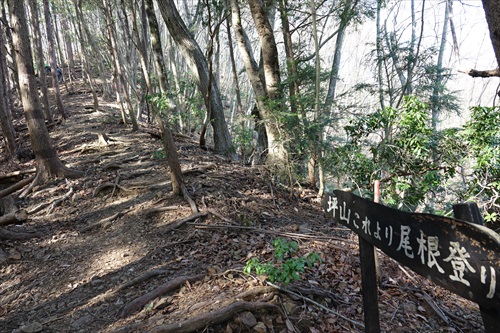 畠の中に設けられた登山道からみる飯尾地籍 | 東・西尾根R分岐点/西尾根へ向かう | |||