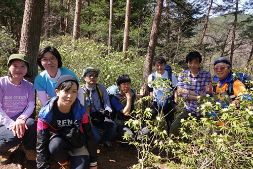 ブロ友さんというより山仲間の皆さんとヒカゲツツジ群生地で記念撮影 | ||||