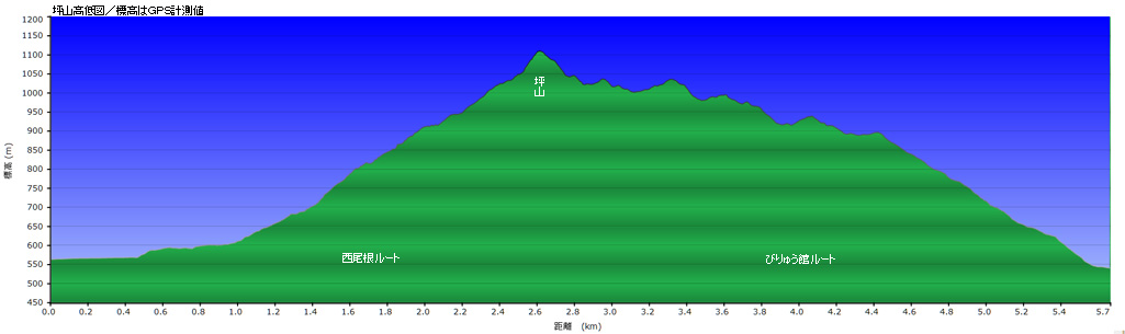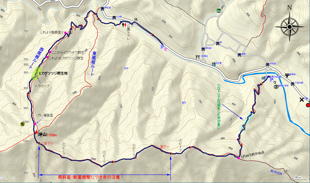 坪山・西尾根〜びりゅう館ルート地図 | ||||