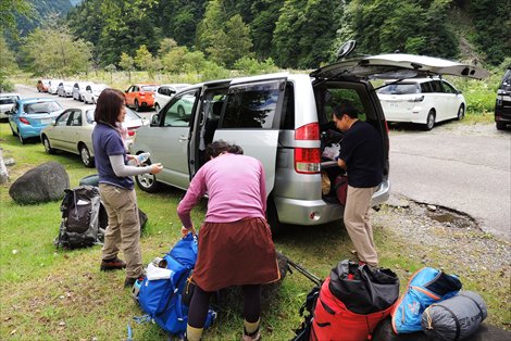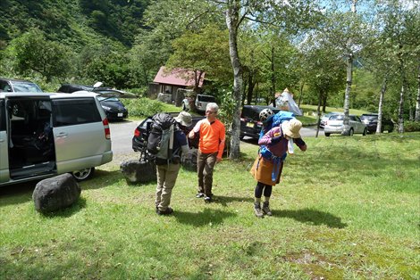 路肩駐車(近くにトイレ有り) 先行する伊藤リーダー&女性隊出発準備中 |