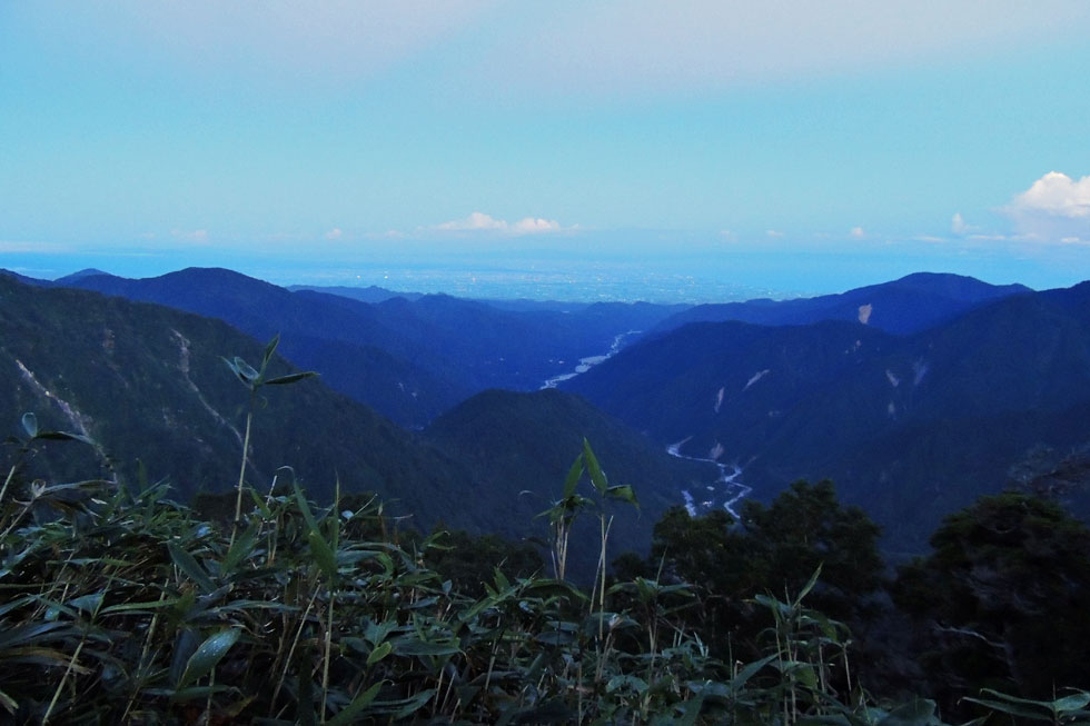 am 5:15 三角点擬き通過 | am 5:15 剱岳が顔を出す 早月小屋の屋根も見えたような気がする |