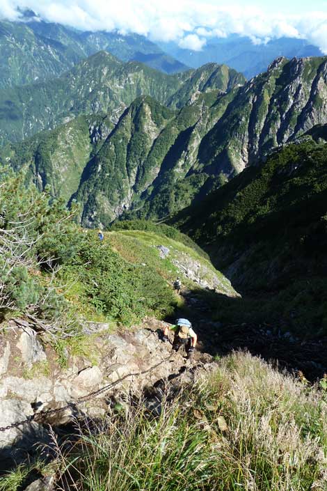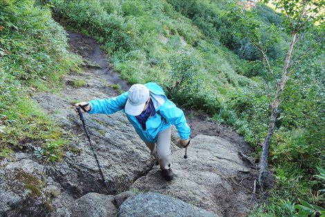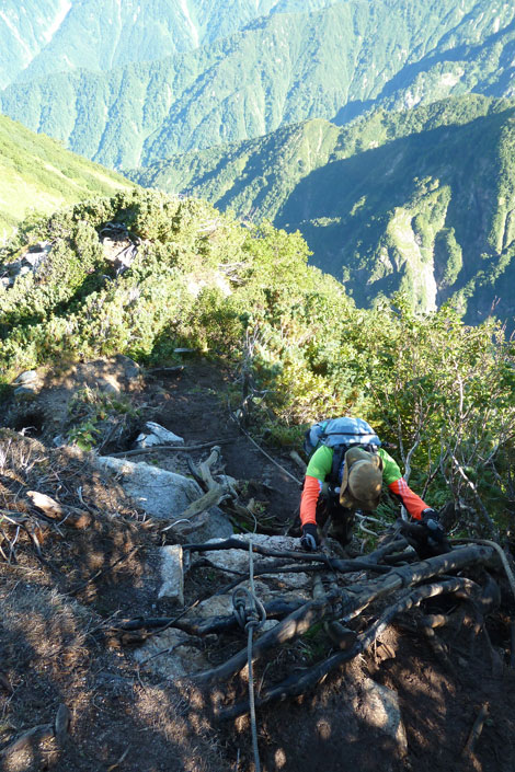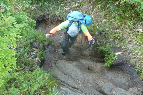 後発の管理人はお見送り テント泊のため女性といえども荷物が多い |