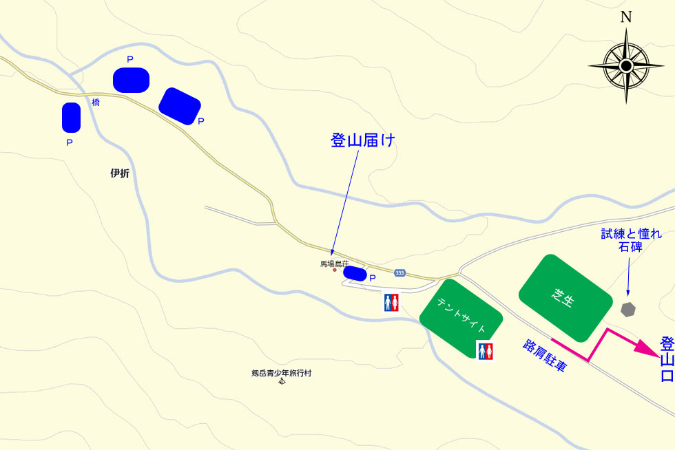 ここに路肩駐車できれば登山口が近い | 試練と憧れの石碑 | |||