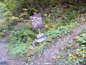 2.蝶ヶ岳三股登山口(トイレ有) am 6:15 駐車場から20分程歩く |