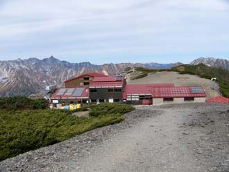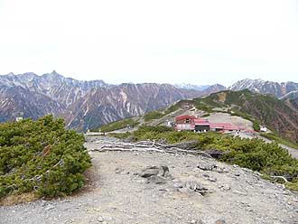 17.蝶ヶ岳ヒュッテと槍ヶ岳 (蝶ヶ岳山頂から) |