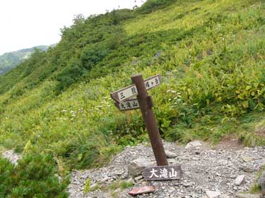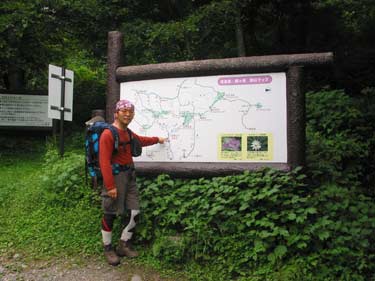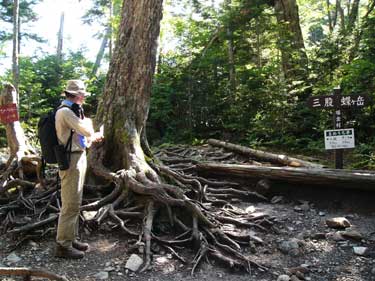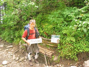 登山口を入ったところが常念岳分岐点で道標に従って直進する。