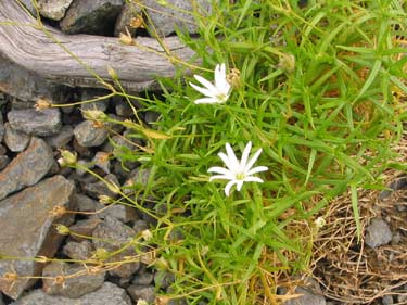 大滝山分岐点のお花畑を過ぎ、ハイマツ帯を抜けると前方に蝶ヶ岳ヒュッテの赤い屋根が見え、