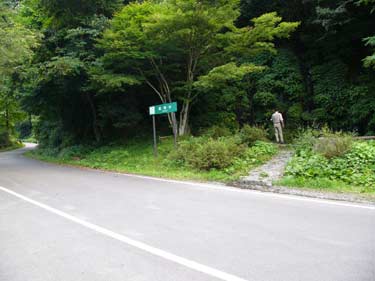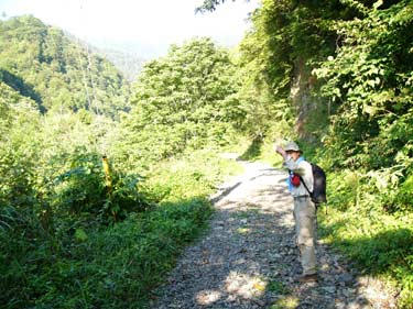 ゲートから林道終点三股登山口までは15分程の歩きだ。
