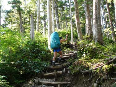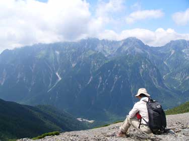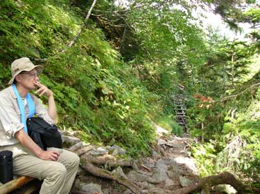 前回の蝶ヶ岳登山では蝶沢で休んだだけだったが、金城山以来、涙腺ならぬ汗腺が