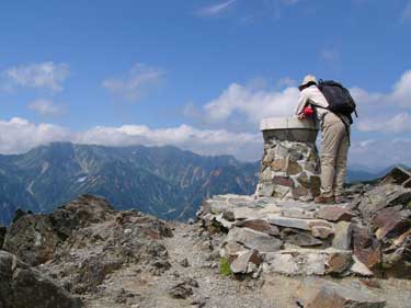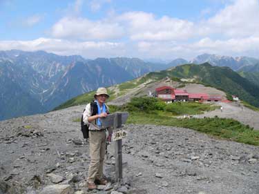 ヒュッテ横を通過して展望指示盤がある「瞑想の丘」に立つと常念・大天井・槍・奥穂・焼岳