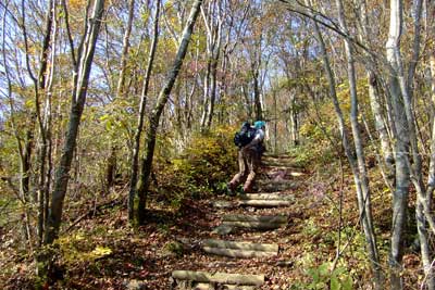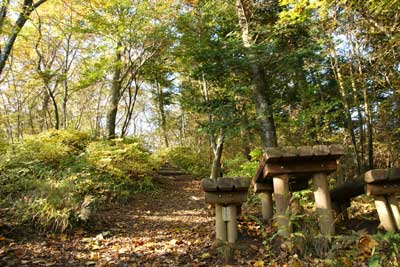 田沼湖キャンプ場Pのトイレ横の階段が登山口 |