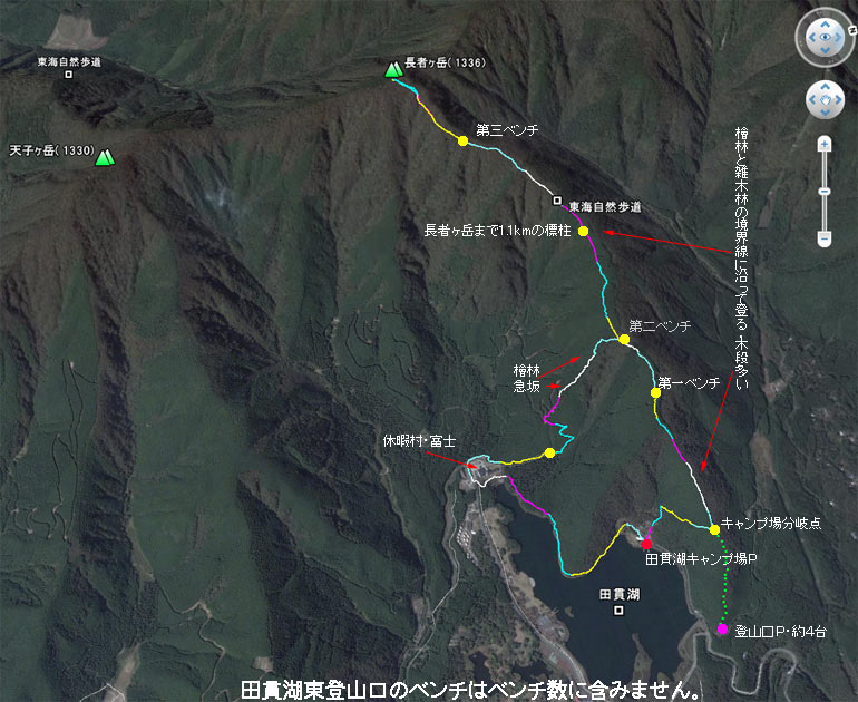 第二ベンチから長者ヶ岳間はGPS誤差で正規ルートより南側に表示されています。 |