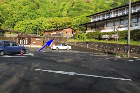 早朝の田貫湖&富士山 | 青矢印/長者ヶ岳登山口 田貫湖キャンプ場駐車場(トイレ有) |