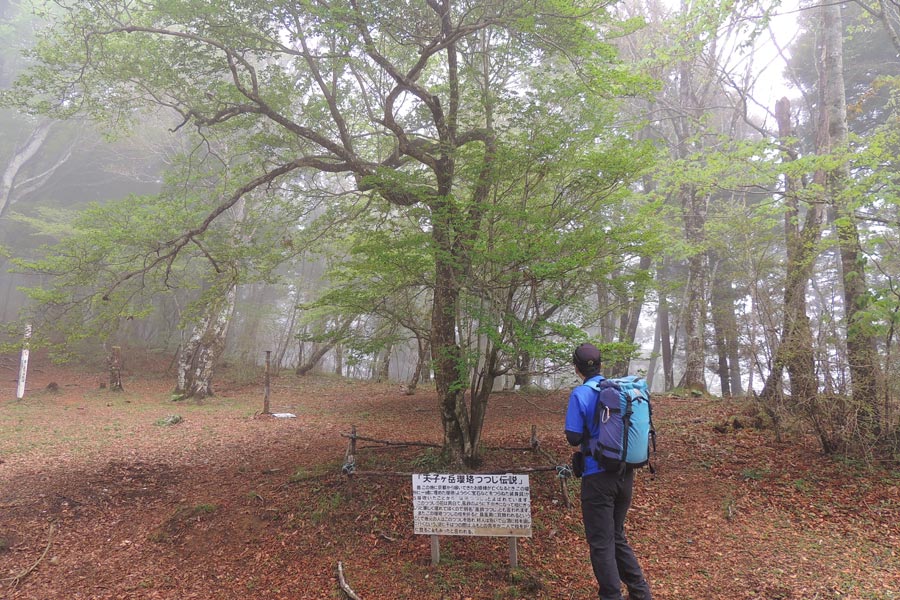 天子ヶ岳の山頂は広々しているが樹木に囲まれ展望はない | |||||