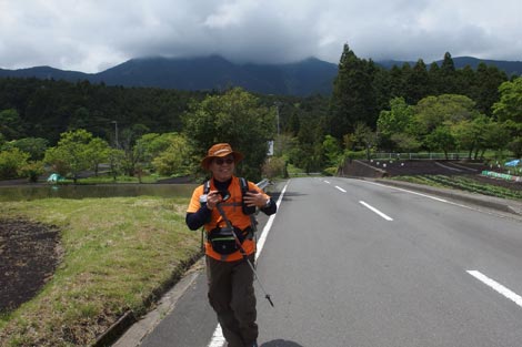 白山大権現 | 天子ヶ岳をバックに車道を歩く | ||||
