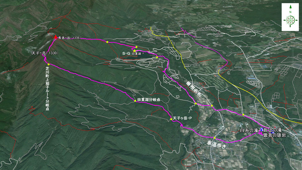 長者ヶ岳〜天子ヶ岳鳥瞰図![]() |