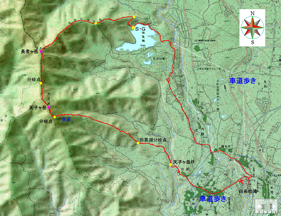長者ヶ岳〜天子ヶ岳登山地図![]() |