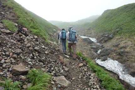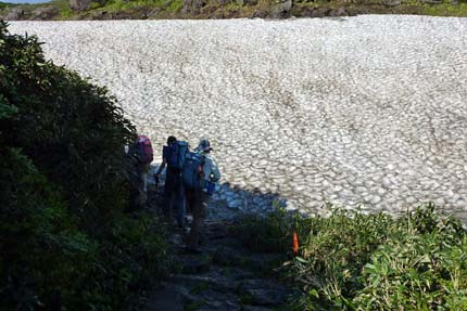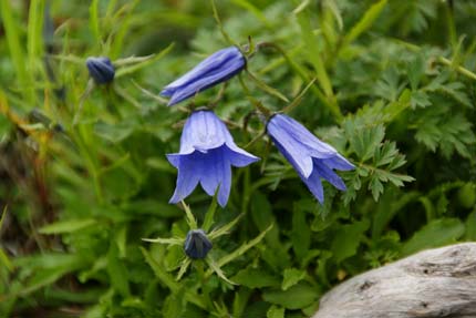 雪渓上部は岩ゴロ道 | イワギキョウ | |||