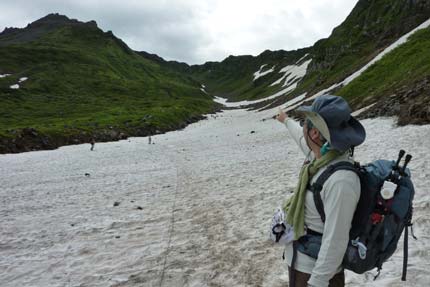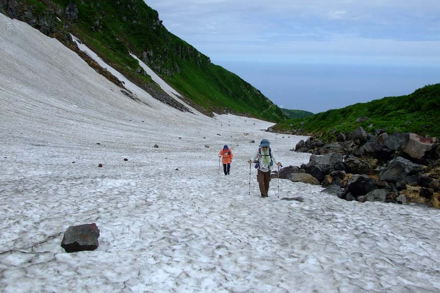 北斜面に登山道はあるが日本海を背にして千蛇谷雪渓を登り込む | ||||