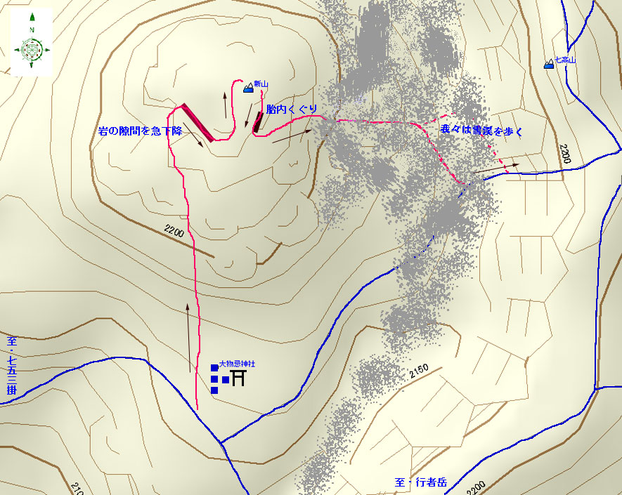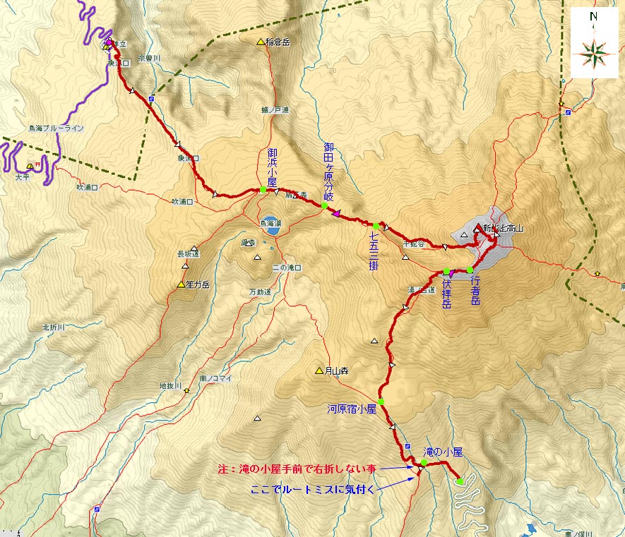 鳥海山(新山)山頂見取り図![]() 赤線ルートは管理人が書き込んだ線のため正確ではありません! |