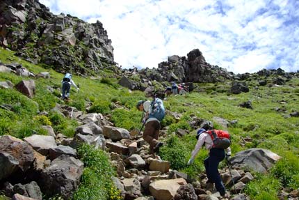 鳥海山直下の胎内くぐり〜七高山〜湯ノ台道〜滝の小屋登山口駐車場へ |