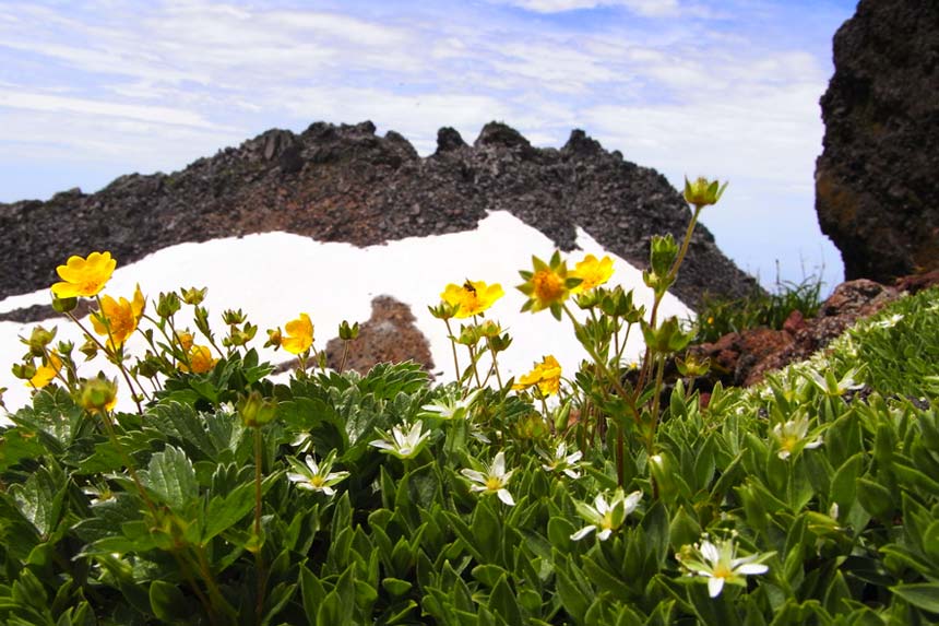 鳥海山とミヤマダイコンソウ&チョウカイフスマ |