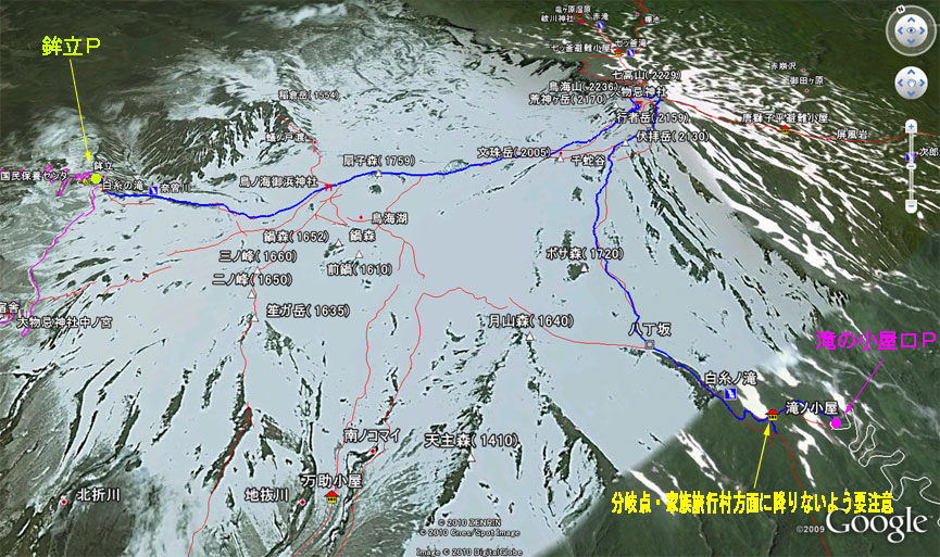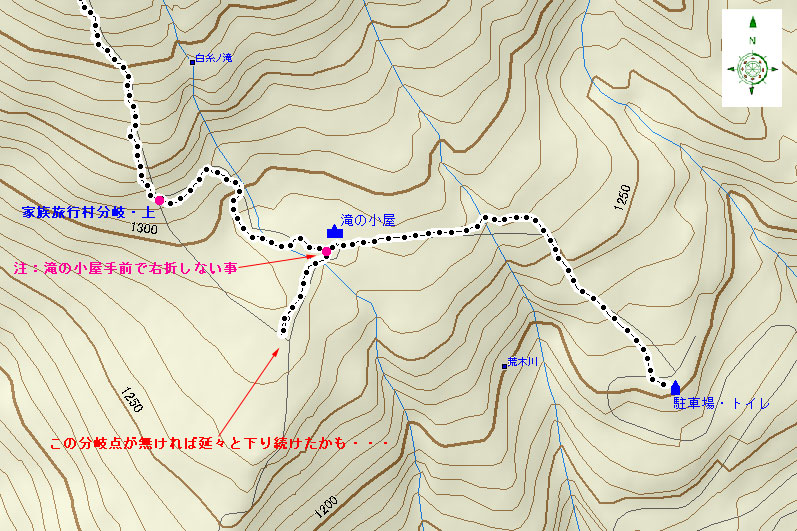 滝の小屋分岐点・要注意箇所の拡大図 |