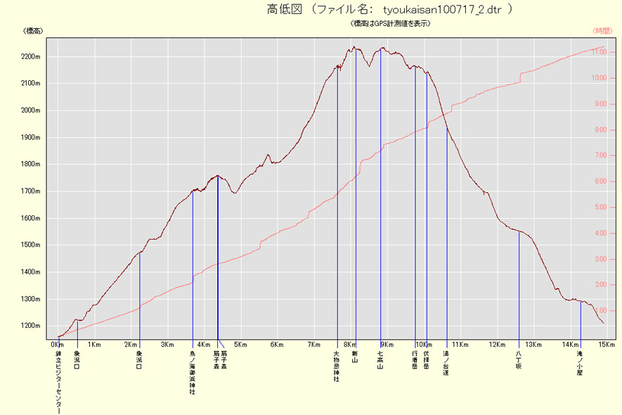 鉾立駐車場標高/1155M 標高差/1081M 総歩行距離/14910M |