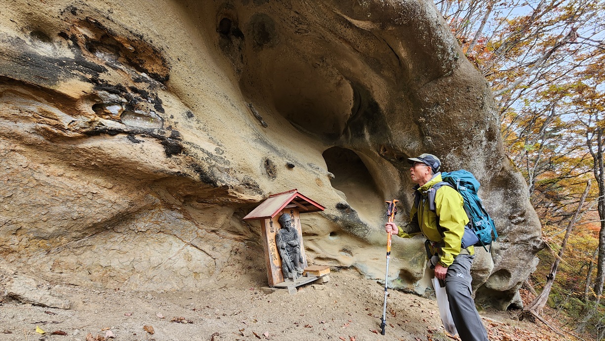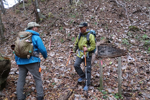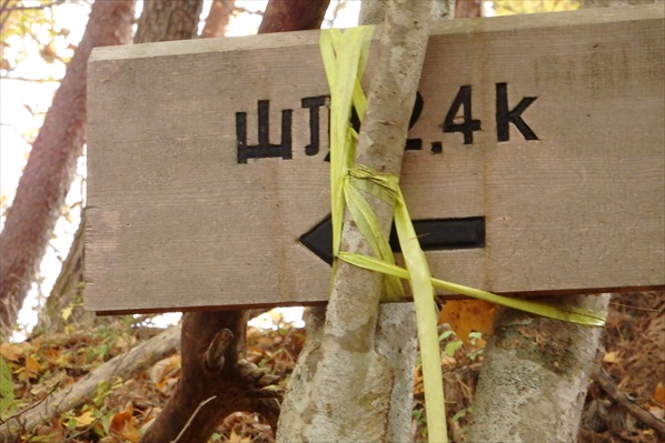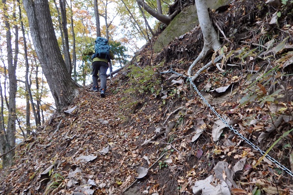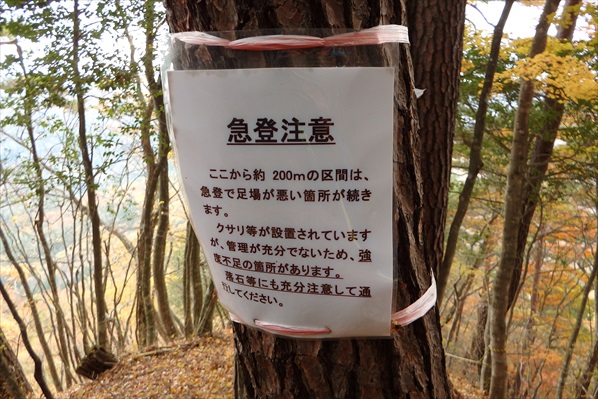 山頂間で1.3`指導標&クサリ設置地点 ※ここから200b区間は上り下りとも慎重に歩く必要あり |
