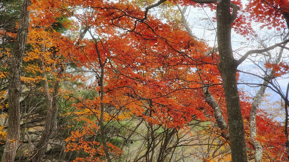青空だったらもっと紅葉が映えるのになぁ〜(T_T) | ||||