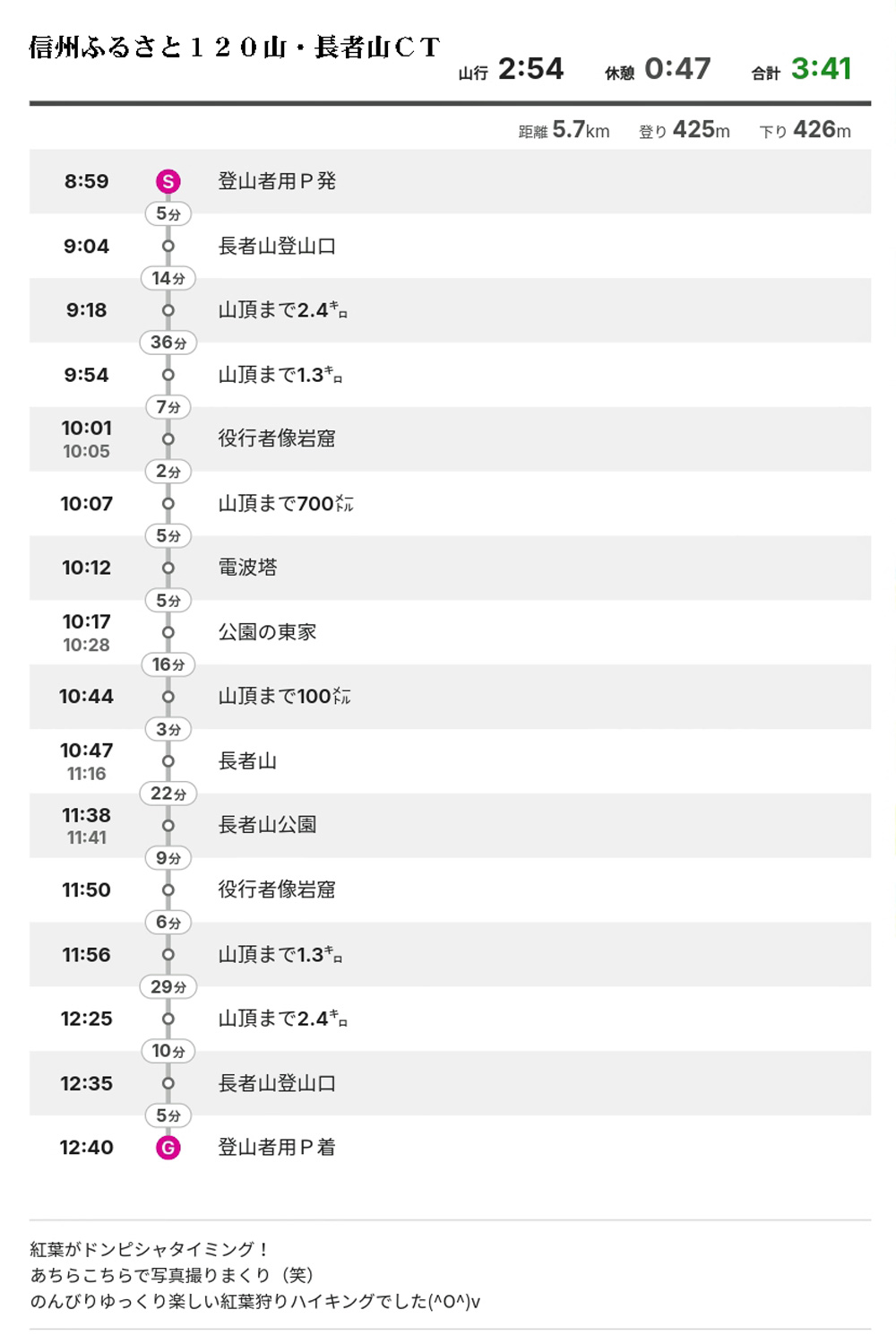 《長者山コースタイム他》 写真撮影時間20分〜100分含む |