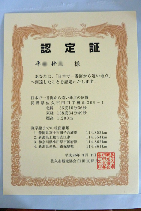 1 | 日本で海から一番遠い地点 | 13.09.07 | ※ | 管理人 | ブログ(山行速報版) |