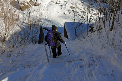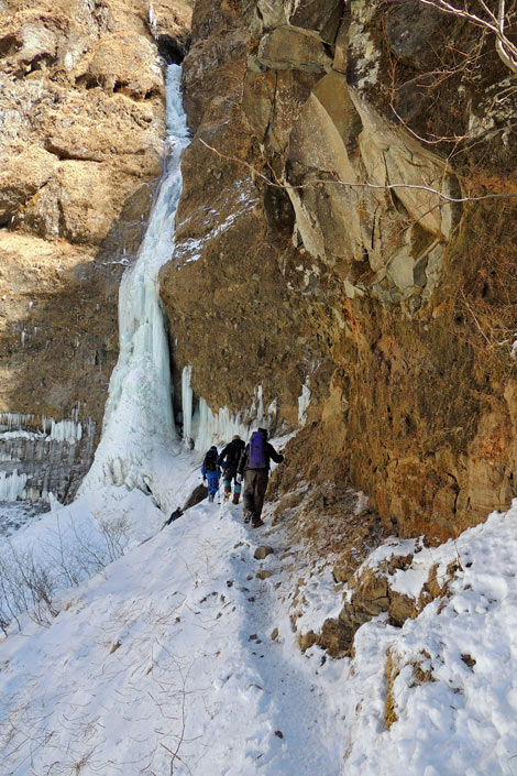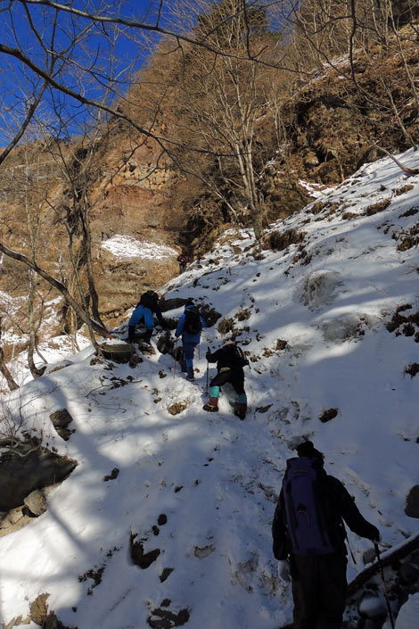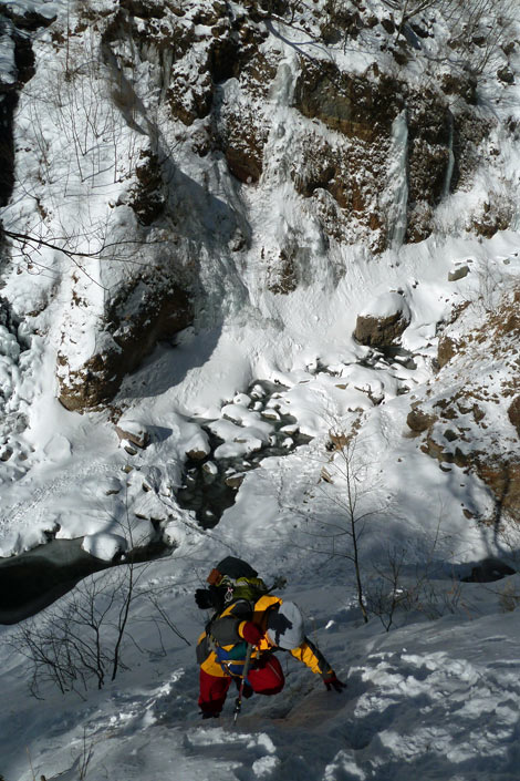 氷の神殿を通過して雲龍瀑へ向かうが登るにつれ斜度がきつくなる難関斜面 |