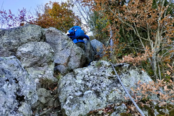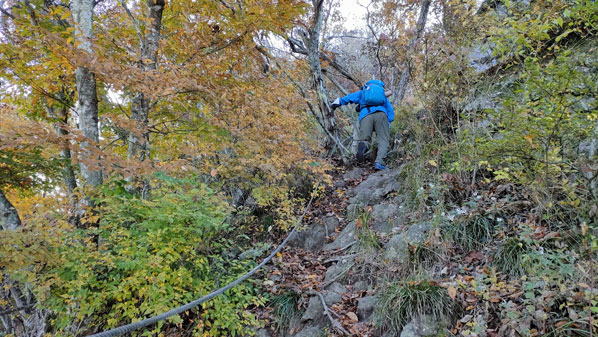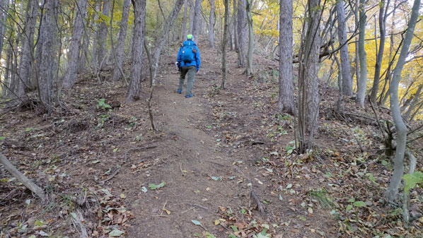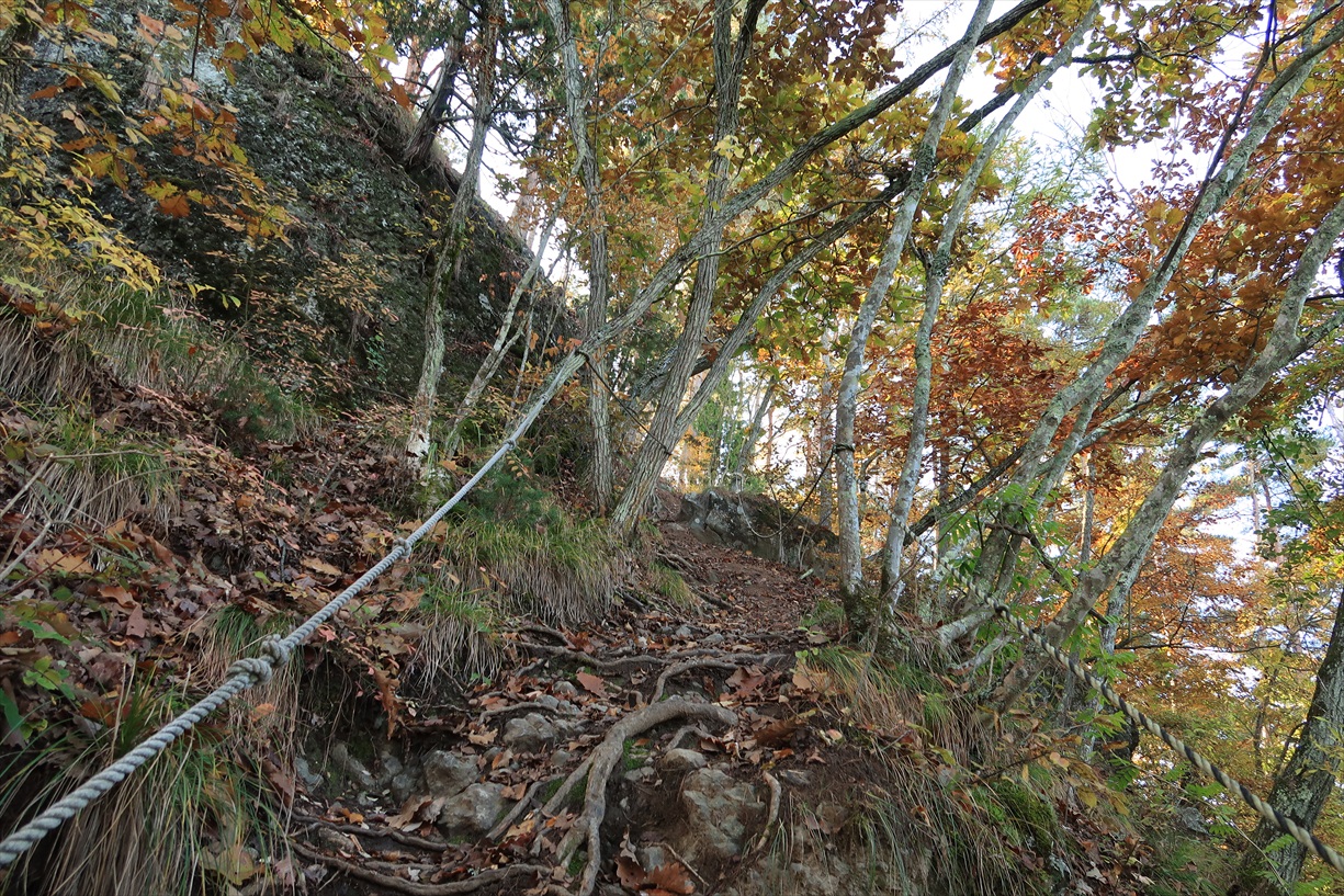 東屋 | 東屋通過後は痩せ尾根歩きとなる | |||