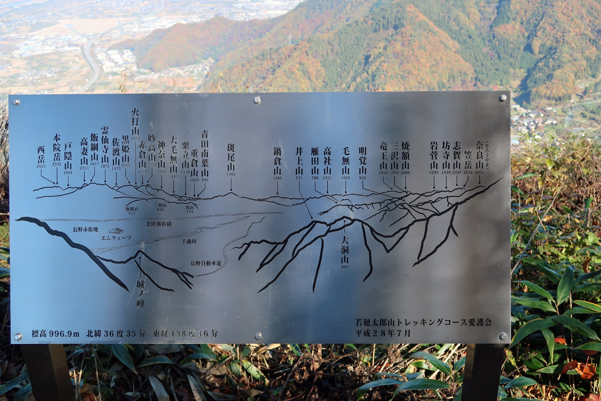 若穂太郎山 996.9m 若穂太郎山からのパノラマ図解あり |