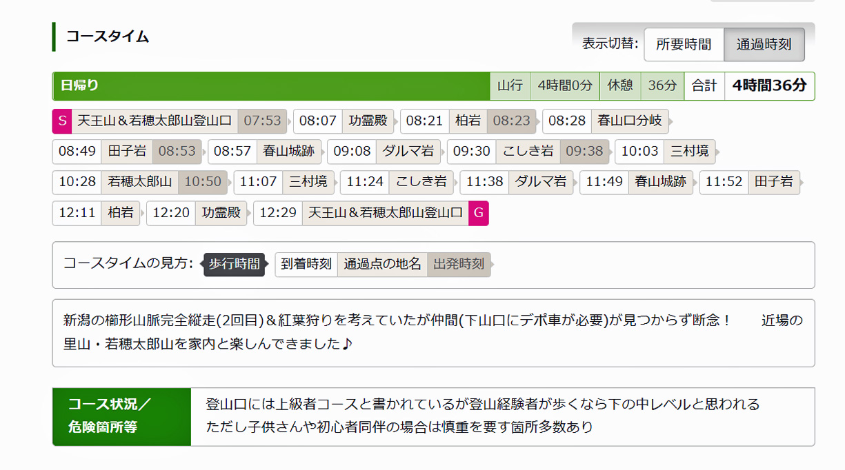 《若穂太郎山コースタイム他》 写真撮影時間20分〜100分含む |