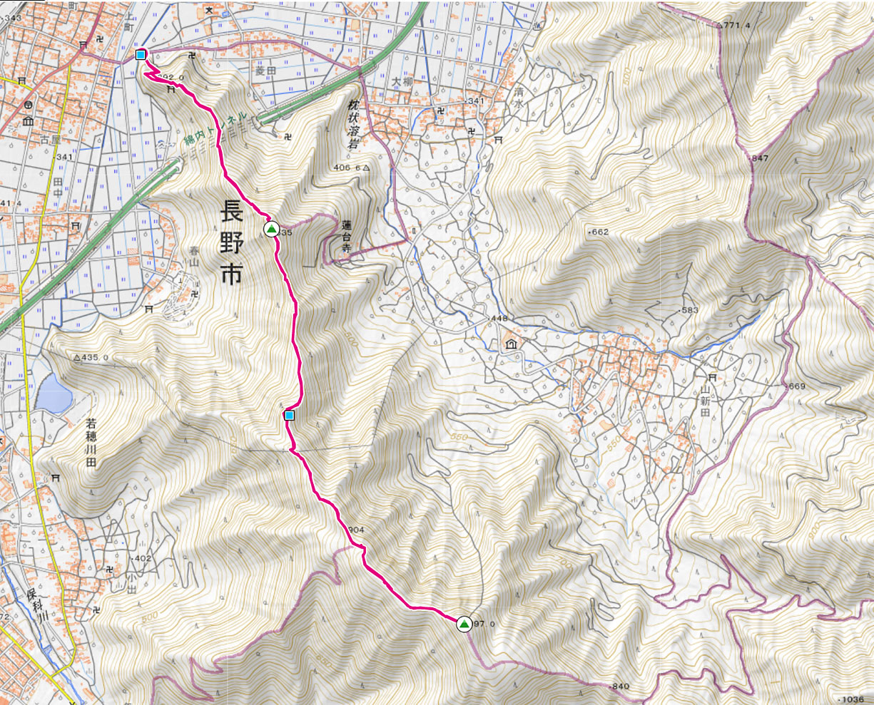若穂太郎山ルート地図 (計曲線 50M 主曲線 10M) |