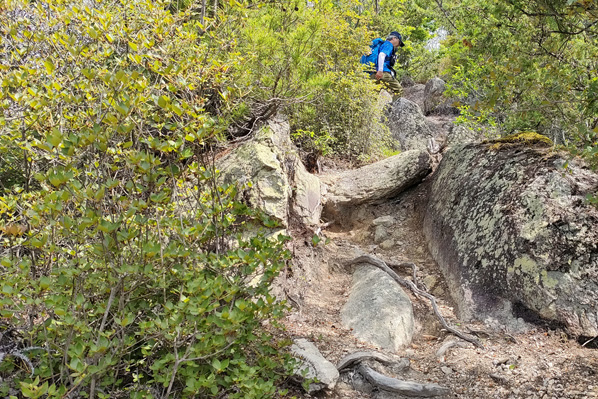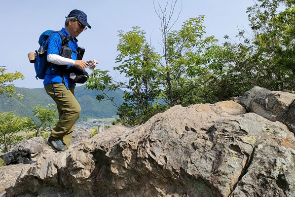 手頃な枯れ枝を持ってブンブン! 蜘蛛の巣対策 | 烏帽子岩 | |||