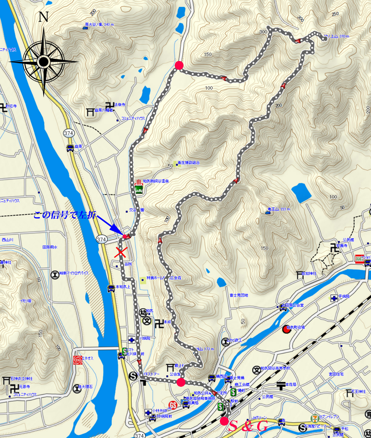 和気アルプスルート地図 (計曲線 50M 主曲線 10M) |