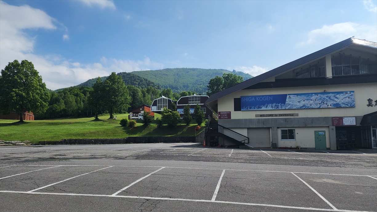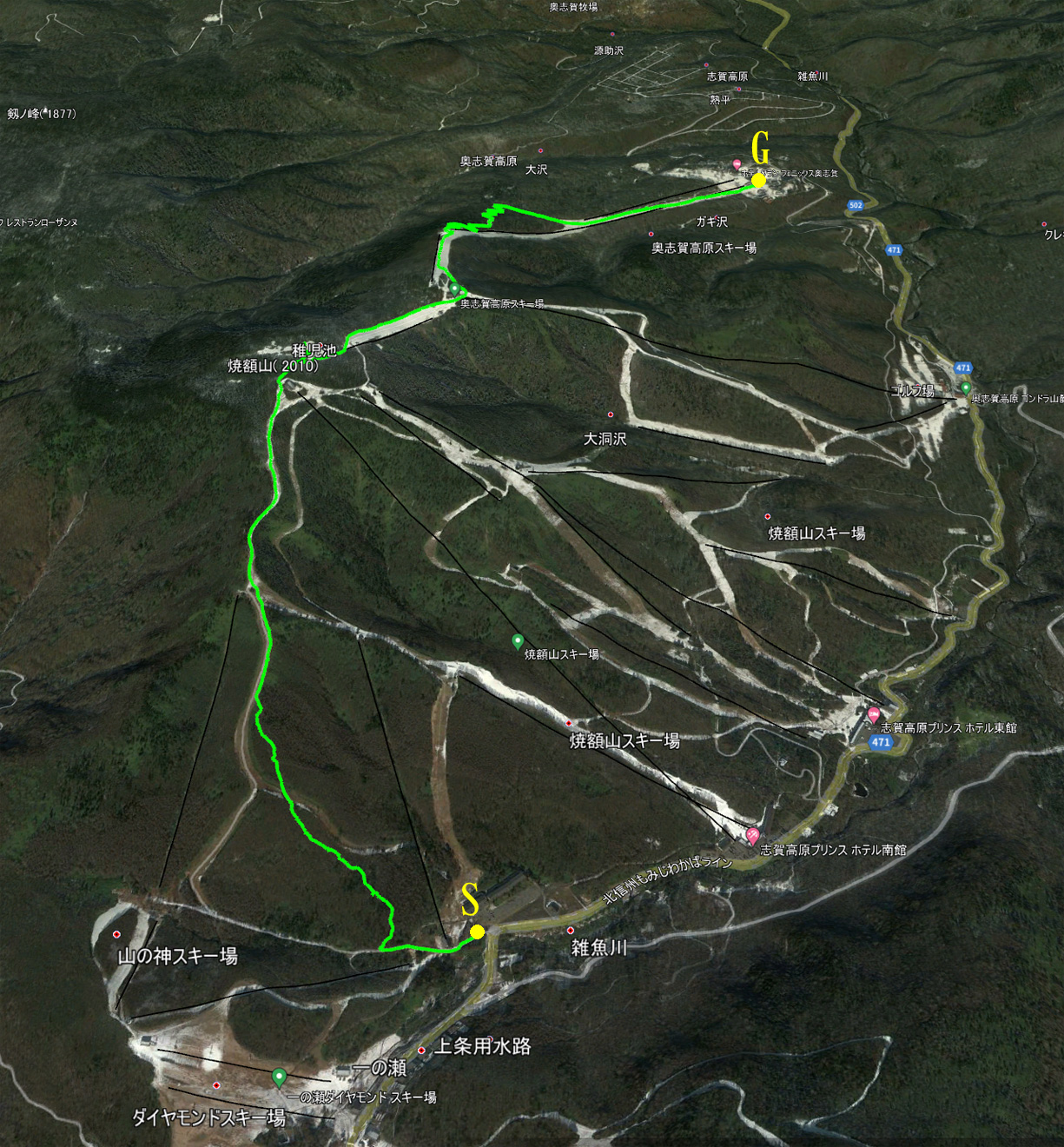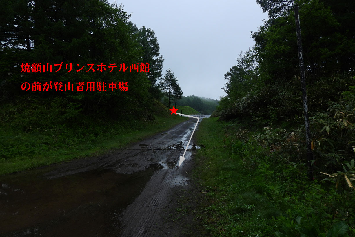奥志賀高原スキー場に車をデポしプリンスホテル西館前駐車場を出発 |