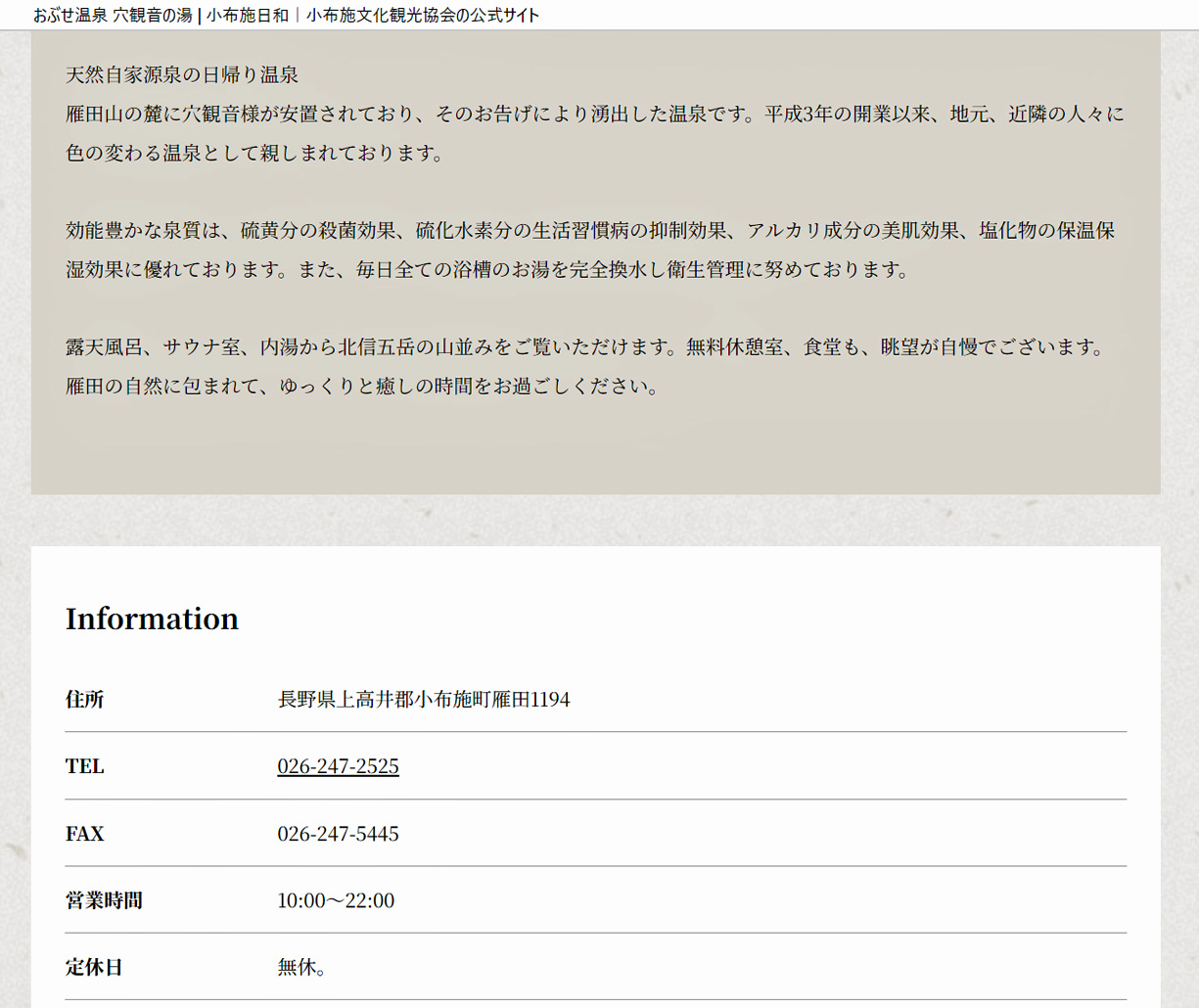 長野県小布施町「おぶせ温泉・穴観音の湯」で汗を流す | ||||