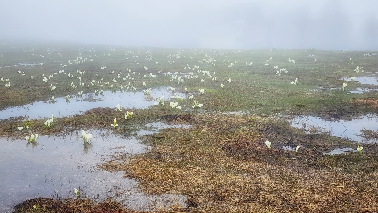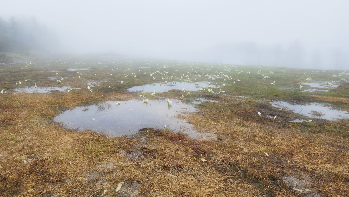 奥志賀高原ゲレンデも足の踏み場がないほどの湿原状態に、、、 | ||||