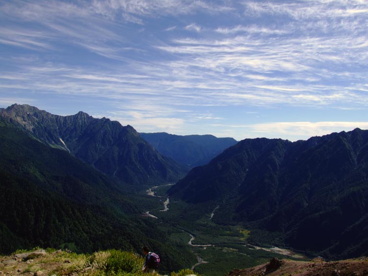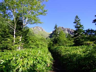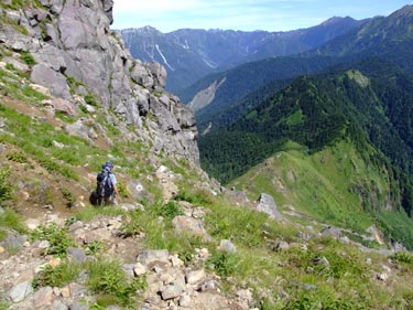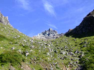 北斜面全景・中央岩峰が焼岳の北峰 |