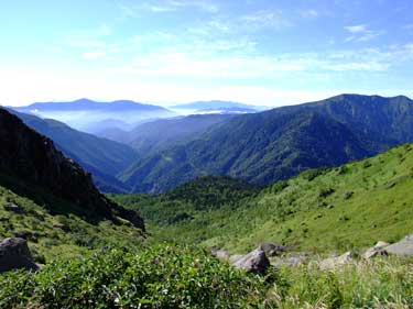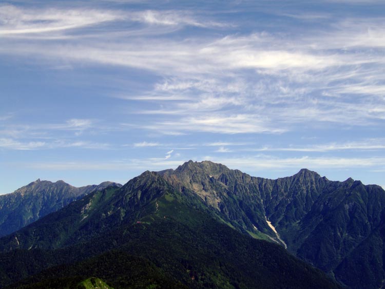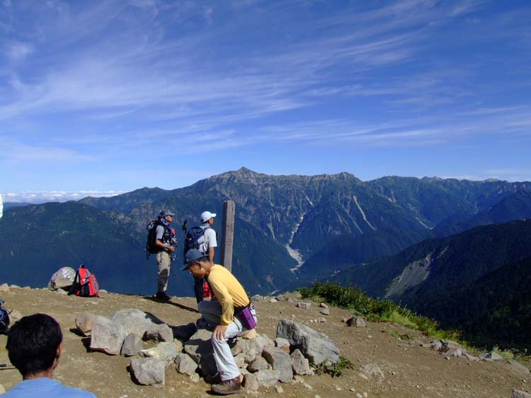 振り返ると鉢盛山の右奥に駒ヶ岳と空木岳が |